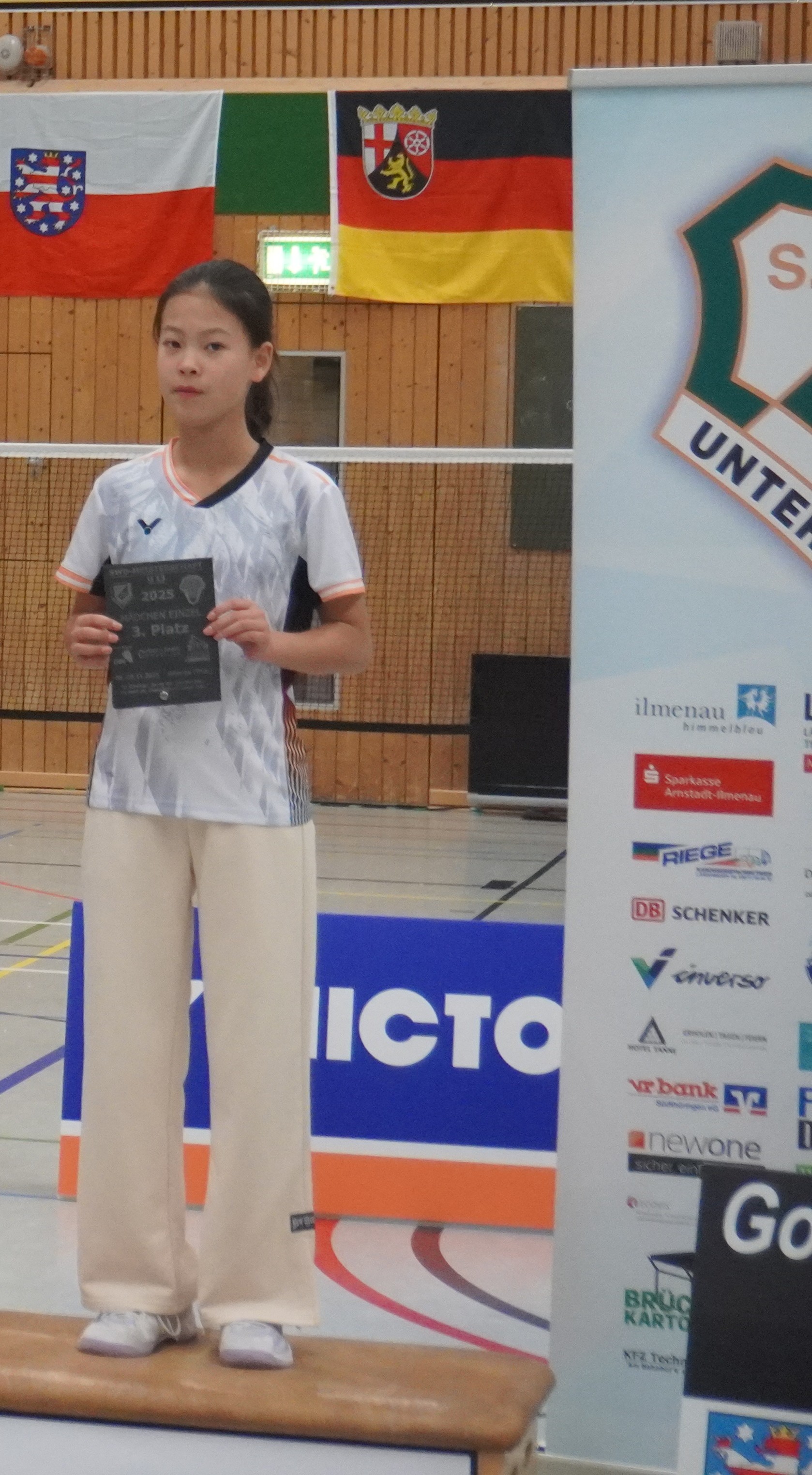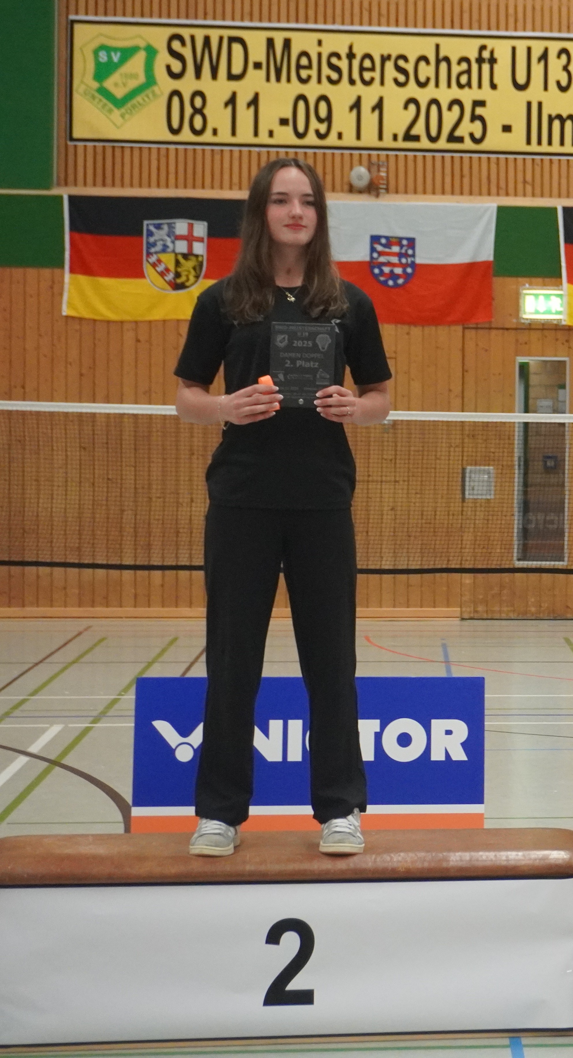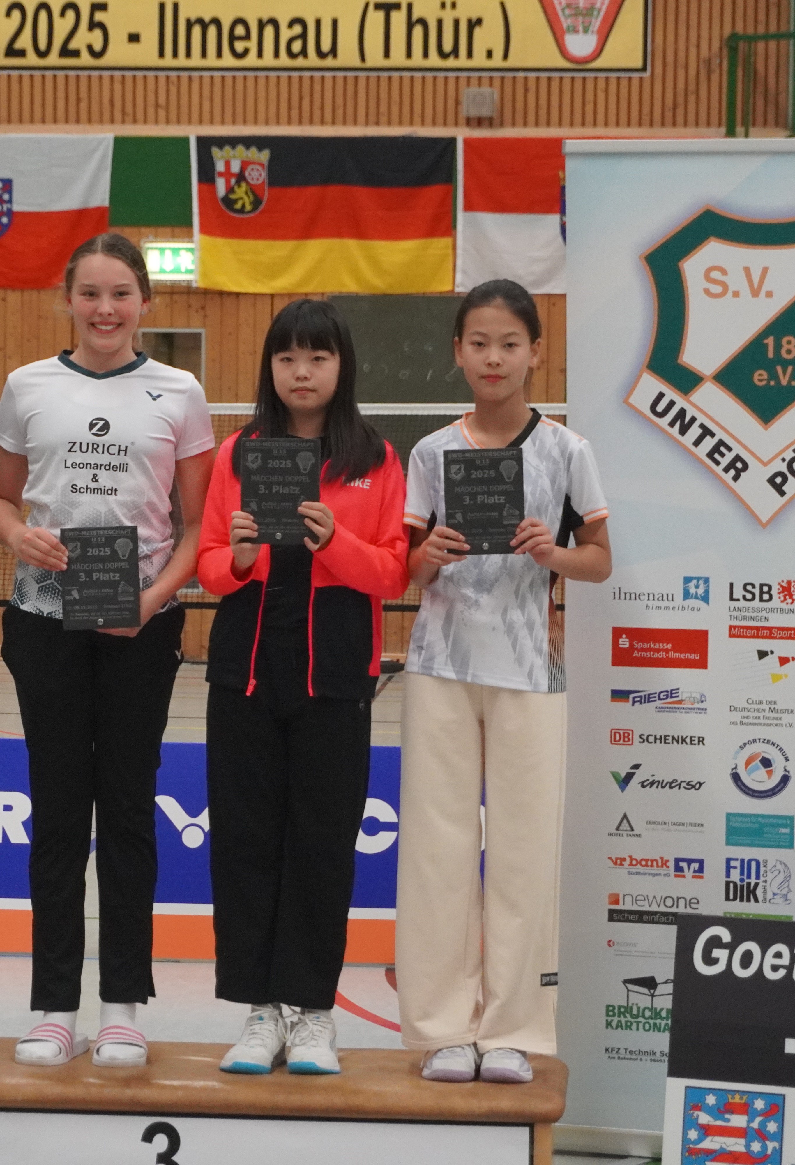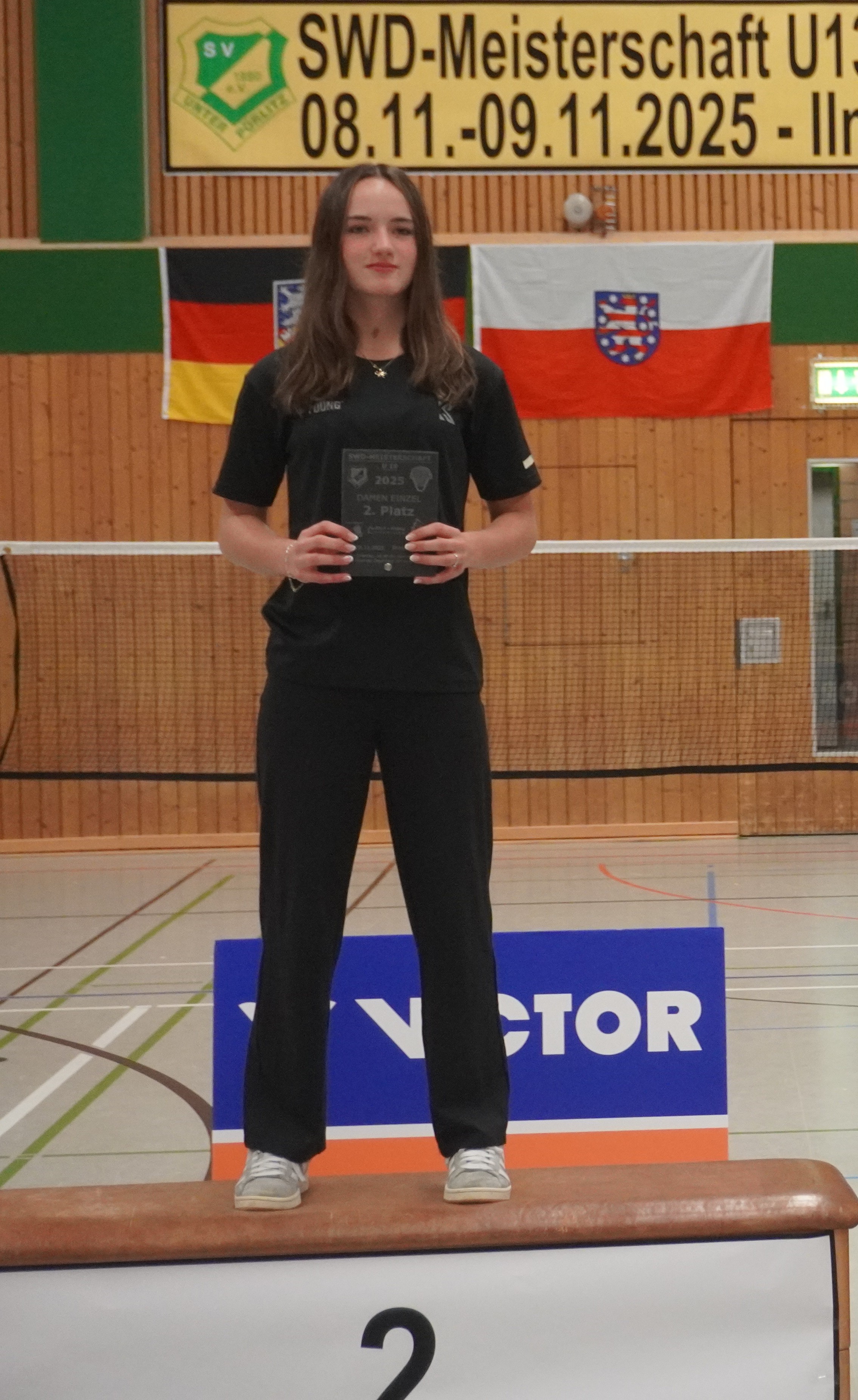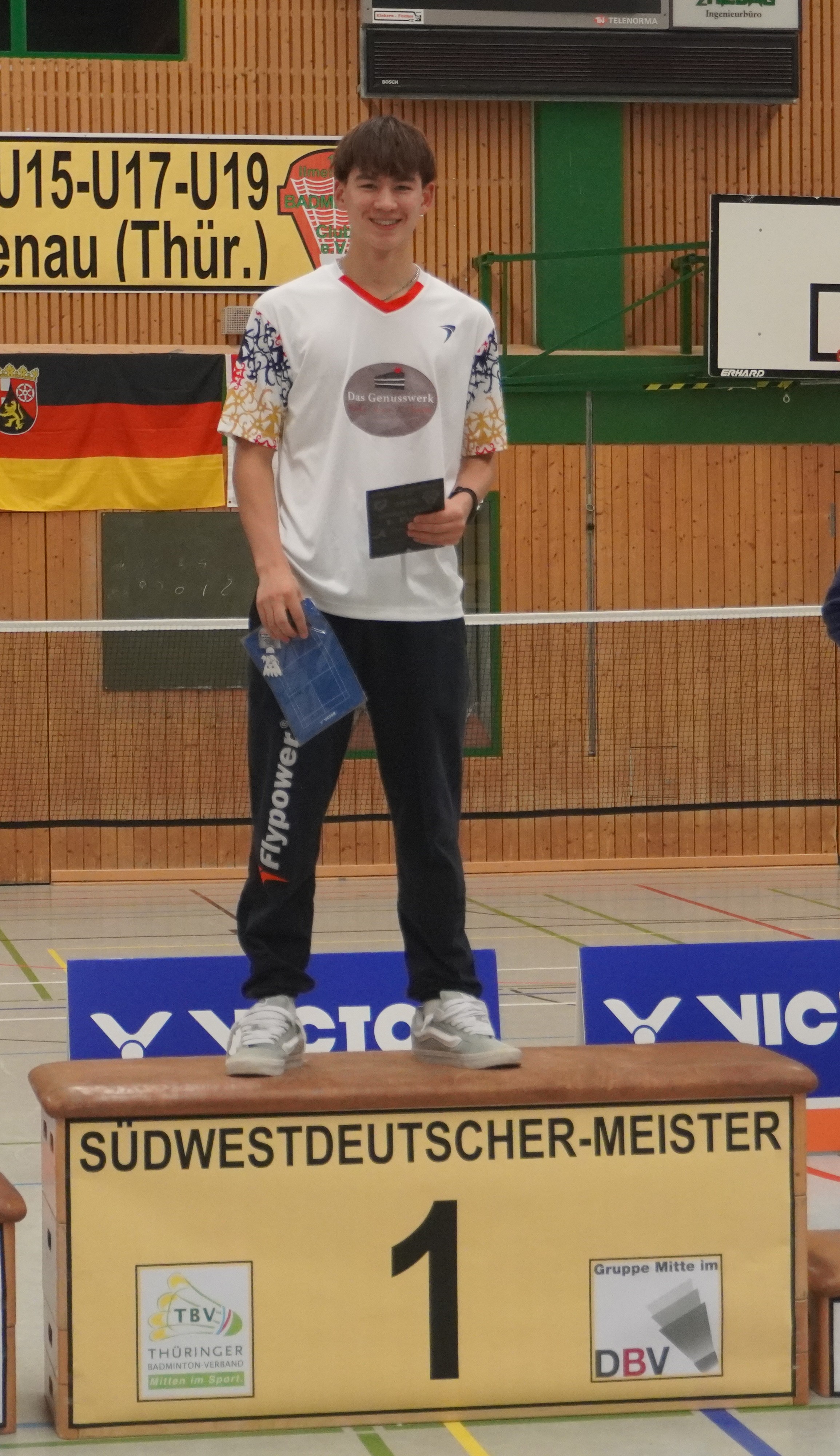 Immer wieder ein Jahreshighlight sind die Südwestdeutschen Meisterschaften, dieses Jahr gemeinschaftlich ausgerichtet von Ilmenau und Unterpörlitz in der Ilmsporthalle Ilmenau. Mit einer großen Gruppe reisten die Hessen an, die Erwartungen auf die Spiele waren groß. Gleich im Mixed konnten die Spieler ihr Können zeigen. Die Titel in der Altersklasse U15 und U17 gingen dabei an unsere hessischen Spieler und Spielerinnen, in der Altersklasse U15 waren nur Hessen auf dem Podest. Hier gewannen Leo Luo und Mira Sun (BV Maintal/Tura Niederhöchstadt) vor Tingzhou Wang und Isabella Deng (beide Tura Niederhöchstadt). Auf Platz 3 folgten Ayaan Singh und Romy Oliva sowie Hareesh Boopathy und Swara Santosh- Krishna (alle TUS Schwanheim). In der Altersklasse U17 ging das Finale kampflos an Helena Huang und Hannes Merget (TV Hofheim/ SG Anspach), nachdem Jule Meinhardt verletzungsbedingt ausfiel. Auf dem dritten Platz folgten noch Sathvik Shankar und Maya Yildiz ( TV Hofheim). In der Altersklasse U13 ging der Titel an Thüringen, Silber holten sich Harshadkumar Karthick und Chunming Yang (TG Unterliederbach und DASV), Bronze sicherte sich Jan Grabczewski (Funball Dortelweil) mit seiner Partnerin, die ungesetzt bis ins Halbfinale stürmten. In der Altersklasse U19 konnte keine hessische Paarung auf das Treppchen springen.